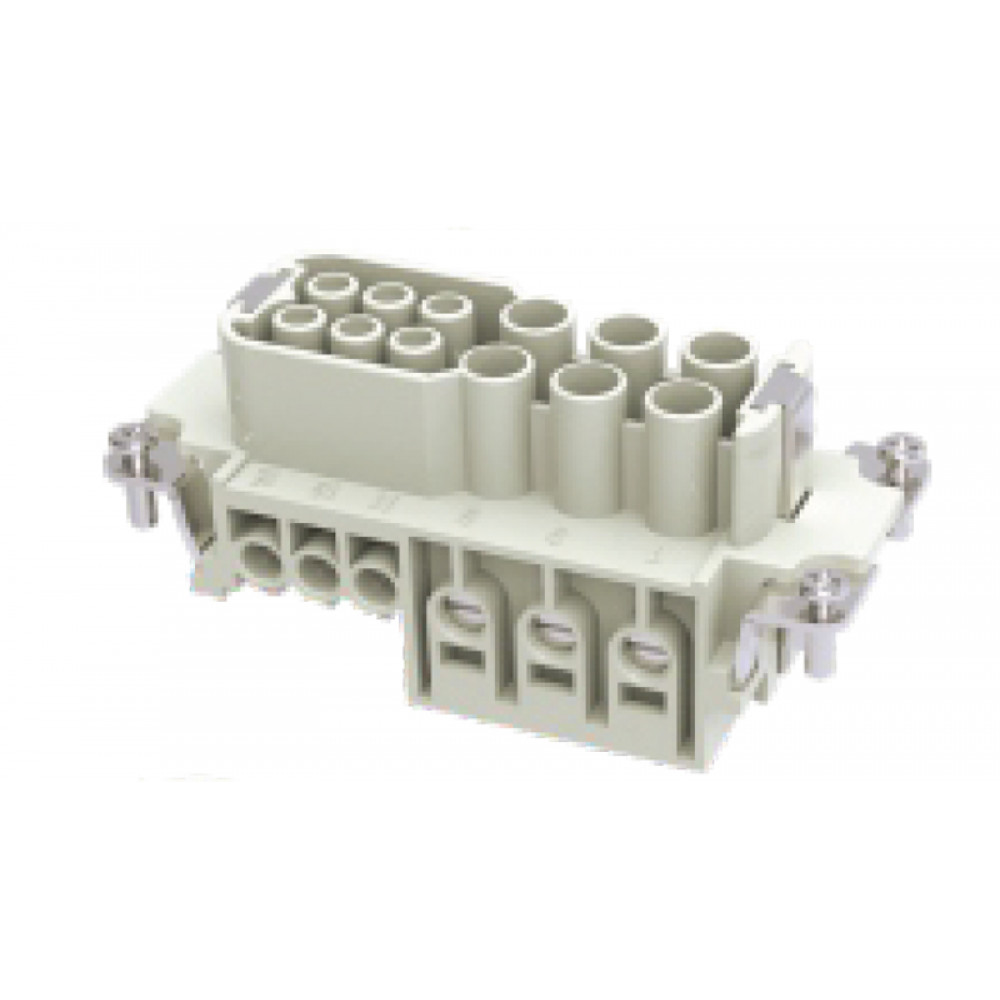 Розеточная контактная вставка, аксиальная винтовая фиксация, 6/6 полюсов + PE, типоразмер 16B, 690V/400V, 40A,/16A, сечение обслуживаемых проводников 1-10 мм кв, тип покрытия контактов: серебро