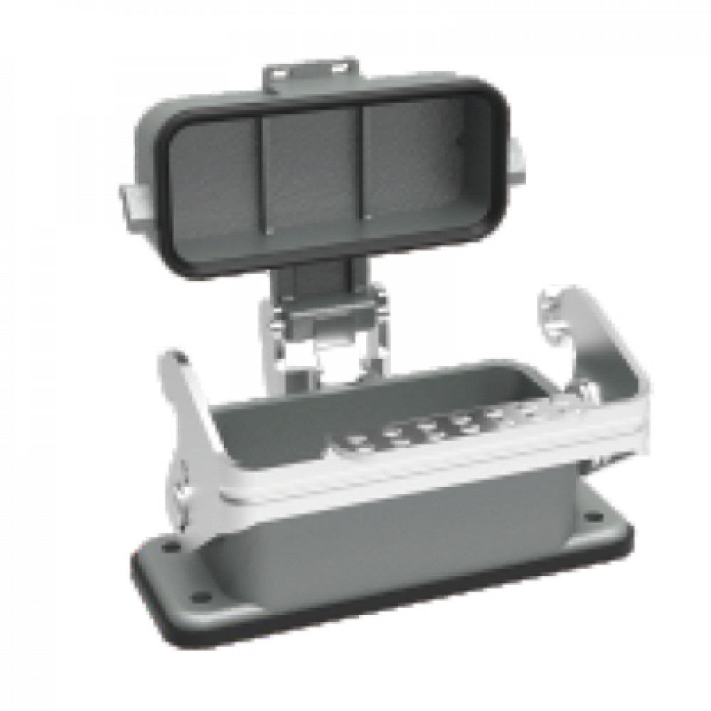 Основание разъема на панель, открытое, типоразмер 10A, без уплотнителя, с одной металлической защелкой, с пластиковой защитной крышкой, материал корпуса: алюминиевый сплав