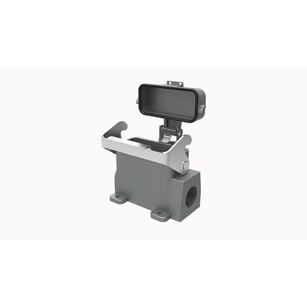 Основание разъема на панель, закрытое, типоразмер 10A, без уплотнителя, 1 отверстие с резьбой для кабельных вводов M20x1,5, с одной защелкой, с защитной крышкой, материал корпуса: алюминиевый сплав