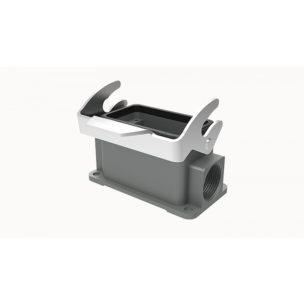Основание разъема на панель, закрытое, типоразмер 10B, с уплотнителем, 2 отверстия с резьбой для кабельных вводов M20x1,5, с одной защелкой, без защитной крышки, материал корпуса: алюминиевый сплав