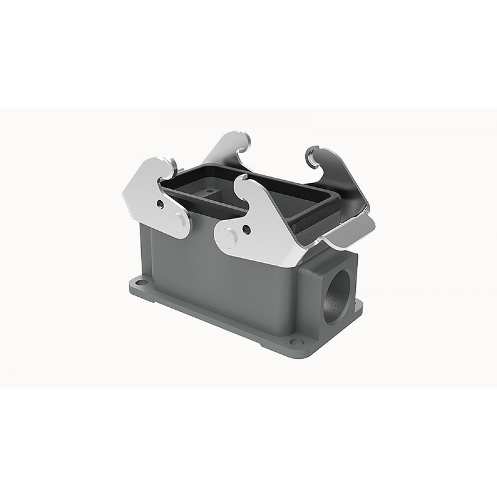 Основание разъема на панель, закрытое, типоразмер 10B, с уплотнителем, 2 отверстия с резьбой для кабельных вводов M25x1,5, с двумя защелками, без защитной крышки, материал корпуса: алюминиевый сплав