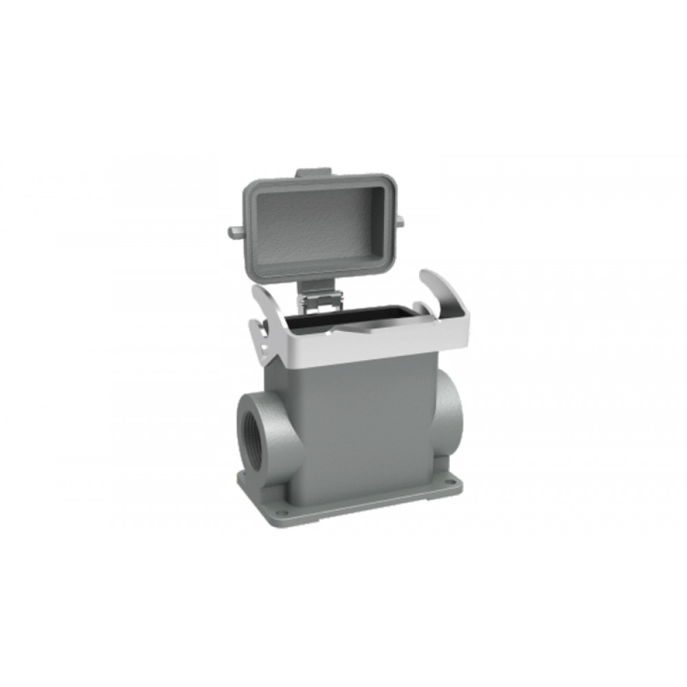 Доставка Закрытое основание разъема D10B-SFH-1L-CV-2PG29 , Основание разъема на панель, закрытое, типоразмер 10B, высокое исполнение, с уплотнителем, 2 отверстия с резьбой для кабельных вводов PG29, с одной защелкой, с защитной крышкой, материал корпуса: алюминиевый сплав