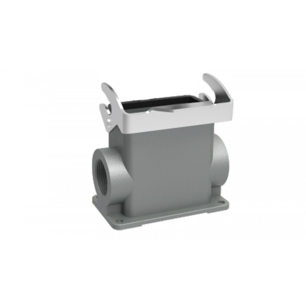 Основание разъема на панель, закрытое, типоразмер 10B, высокое исполнение, с уплотнителем, 1 отверстие с резьбой для кабельных вводов PG29, с одной защелкой, без защитной крышки, материал корпуса: алюминиевый сплав