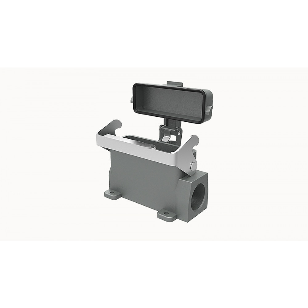 Основание разъема на панель, закрытое, типоразмер 16A, без уплотнителя, 2 отверстия с резьбой для кабельных вводов M25x1,5, с одной защелкой, с защитной крышкой, материал корпуса: алюминиевый сплав