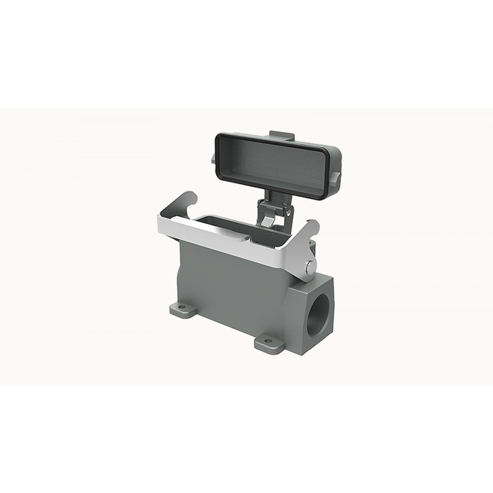Основание разъема на панель, закрытое, типоразмер 16A, без уплотнителя, 1 отверстие с резьбой для кабельных вводов PG16, с одной защелкой, с защитной крышкой, материал корпуса: алюминиевый сплав