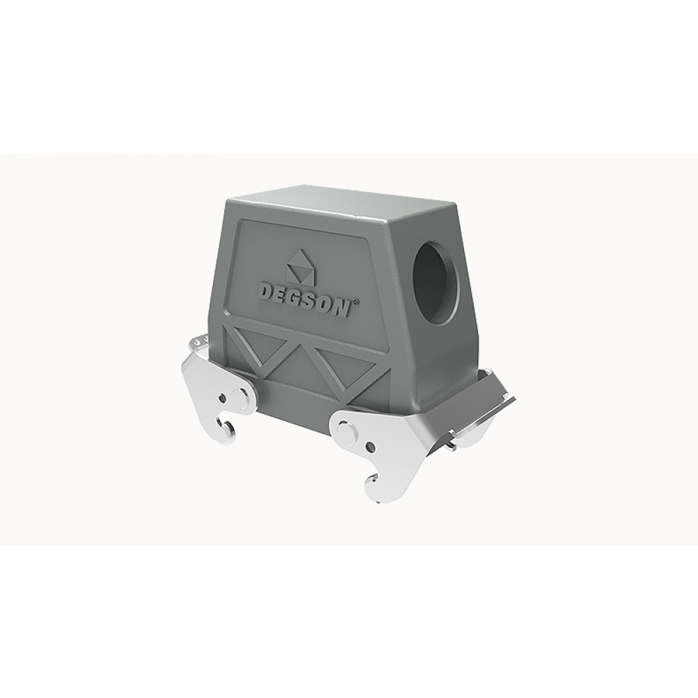 Крышка разъема D16B-SEH-2L-M32, Крышка разъема на кабель, типоразмер 16B, высокое исполнение, без уплотнителя, 1 отверстие с резьбой для кабельных вводов M32x1,5, с боковым расположением, с двумя защелками, материал корпуса: алюминиевый сплав