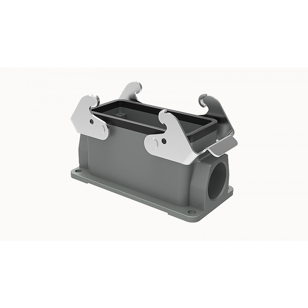 Основание разъема на панель, закрытое, типоразмер 16B, с уплотнителем, 1 отверстие с резьбой для кабельных вводов PG21, с двумя защелками, без защитной крышки, материал корпуса: алюминиевый сплав