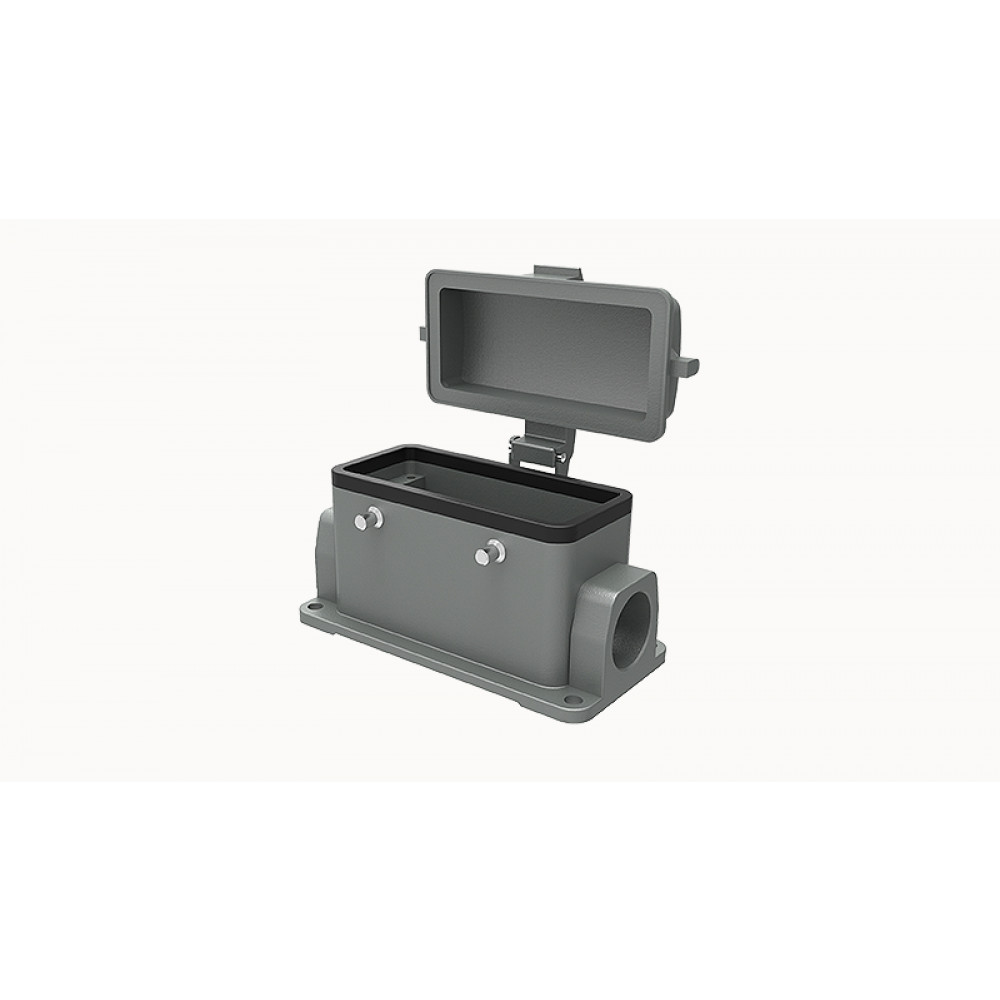 Основание разъема на панель, закрытое, типоразмер 16B, с уплотнителем, 1 отверстие с резьбой для кабельных вводов PG21, без защелок (упоры для двух защелок), с защитной крышкой, материал корпуса: алюминиевый сплав