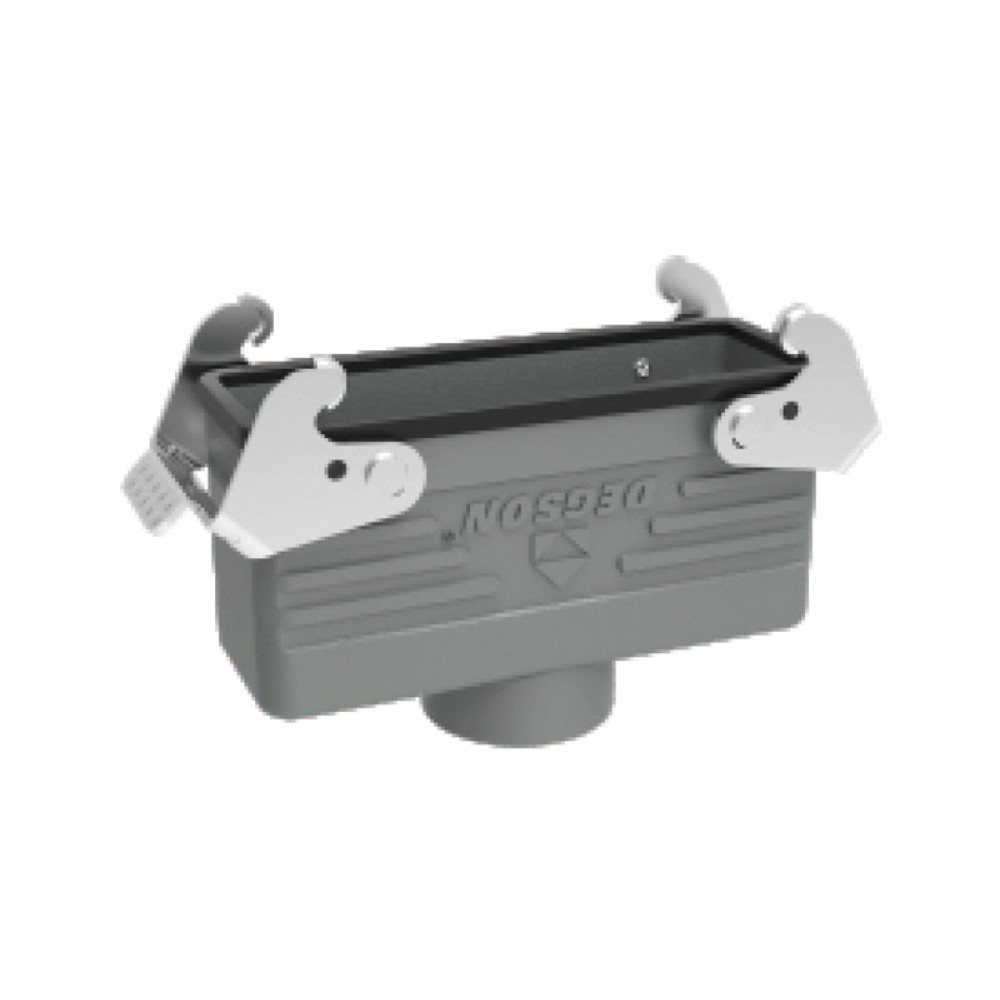 Доставка Крышка разъема D24B-CCT-2L-M25 , Крышка разъема на кабель, типоразмер 24B, с уплотнителем, 1 отверстие с резьбой для кабельных вводов M25x1,5, с верхним расположением, с двумя защелками, материал корпуса: алюминиевый сплав