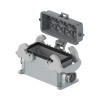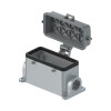 Основание разъема на панель, закрытое, типоразмер 24B, с уплотнителем, 2 отверстия с резьбой для кабельных вводов M25x1,5, без защелок (упоры для двух защелок), с защитной крышкой, материал корпуса: алюминиевый сплав