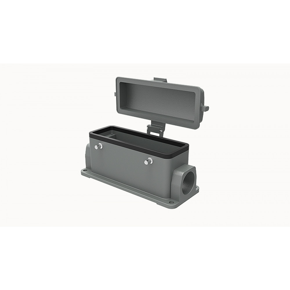 Основание разъема на панель, закрытое, типоразмер 24B, с уплотнителем, 2 отверстия с резьбой для кабельных вводов PG21, без защелок (упоры для двух защелок), с защитной крышкой, материал корпуса: алюминиевый сплав