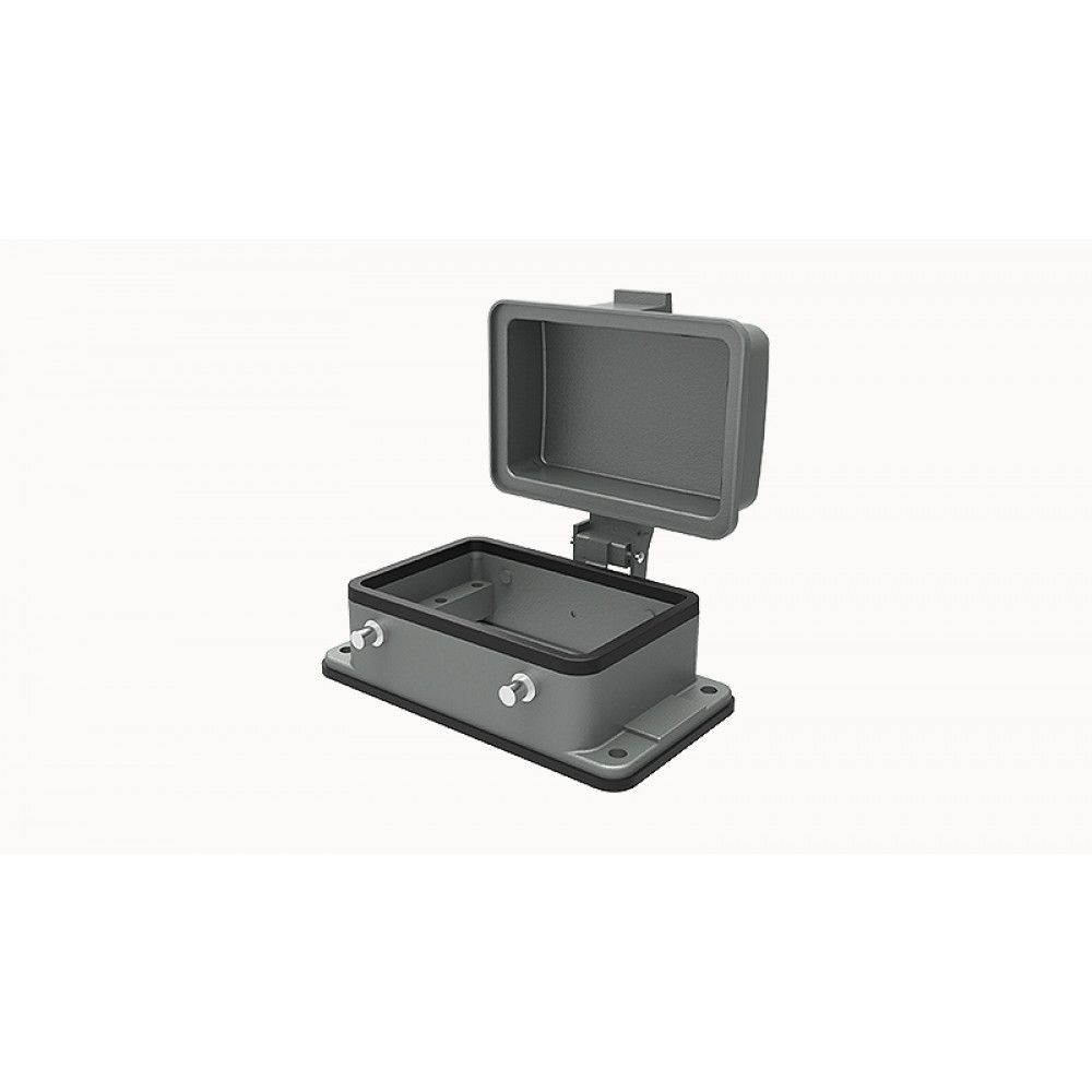 Основание разъема на панель, открытое, типоразмер 32A, с уплотнителем, без защелок (упоры для двух защелок), с защитной крышкой, материал корпуса: алюминиевый сплав