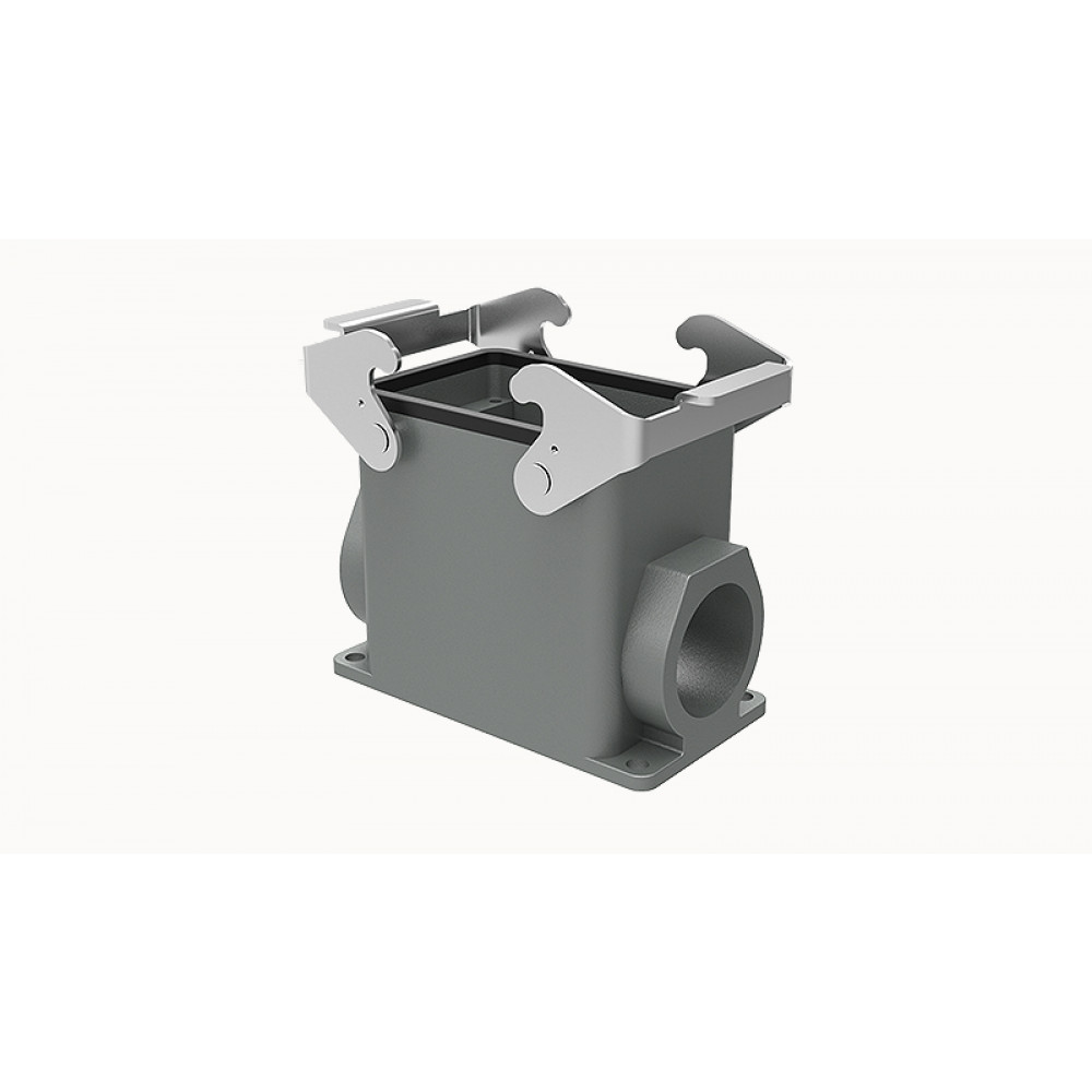 Основание разъема на панель, закрытое, типоразмер 32A, с уплотнителем, 2 отверстия с резьбой для кабельных вводов M32x1,5, с двумя защелками, без защитной крышки, материал корпуса: алюминиевый сплав