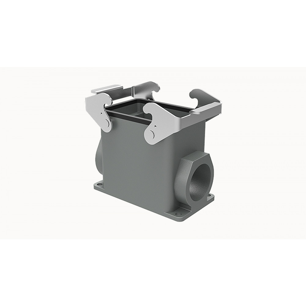 Основание разъема на панель, закрытое, типоразмер 32A, с уплотнителем, 2 отверстия с резьбой для кабельных вводов PG21, с двумя защелками, без защитной крышки, материал корпуса: алюминиевый сплав