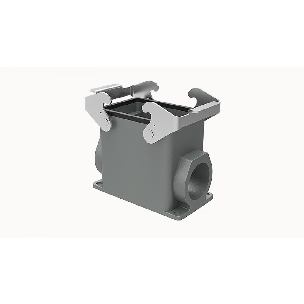 Основание разъема на панель, закрытое, типоразмер 32A, с уплотнителем, 2 отверстия с резьбой для кабельных вводов PG29, с двумя защелками, без защитной крышки, материал корпуса: алюминиевый сплав