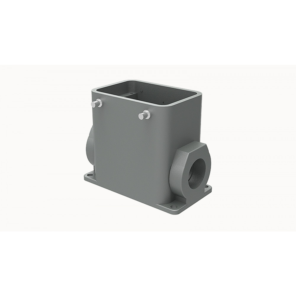 Основание разъема на панель, закрытое, типоразмер 32A, без уплотнителя, 2 отверстия с резьбой для кабельных вводов M32x1,5, без защелок (упоры для двух защелок), без защитной крышки, материал корпуса: алюминиевый сплав