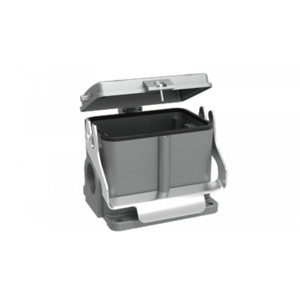 Основание разъема на панель, закрытое, типоразмер 48B, с уплотнителем, 1 отверстие с резьбой для кабельных вводов PG36, с одной металлической защелкой, с пластиковой защитной крышкой, материал корпуса: алюминиевый сплав