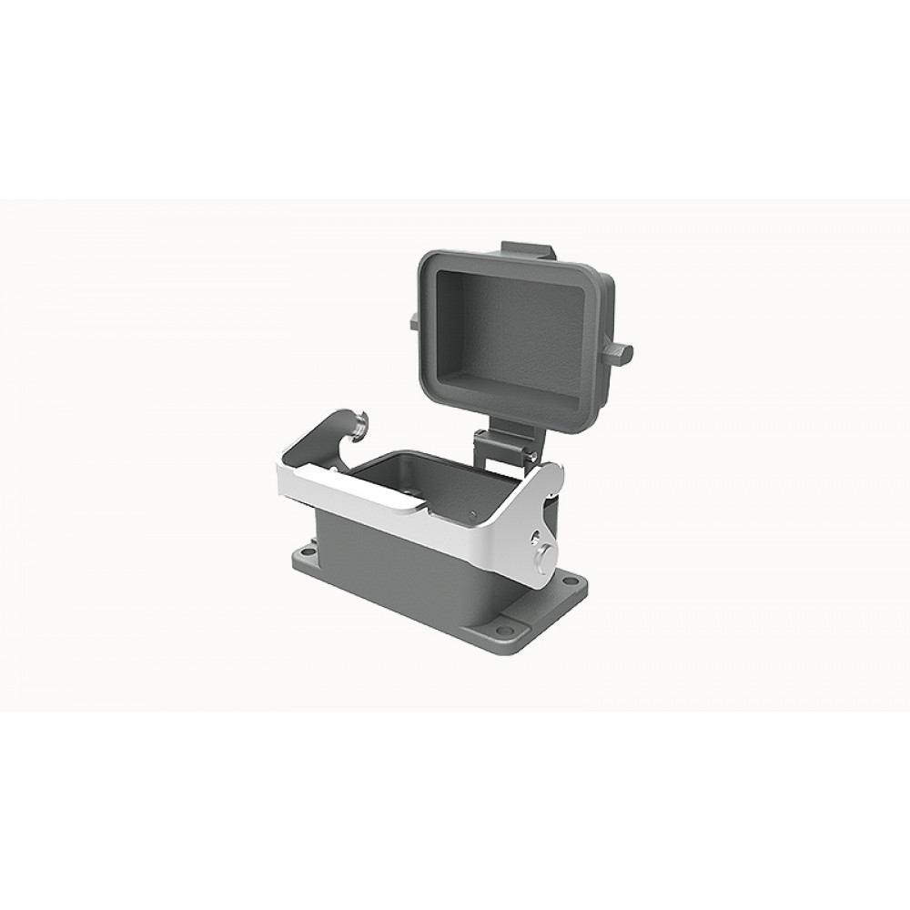 Открытое основание разъема D6B-BK-1L-MCV, Основание разъема на панель, открытое, типоразмер 6B, с уплотнителем, с одной защелкой, с защитной крышкой, материал корпуса: алюминиевый сплав
