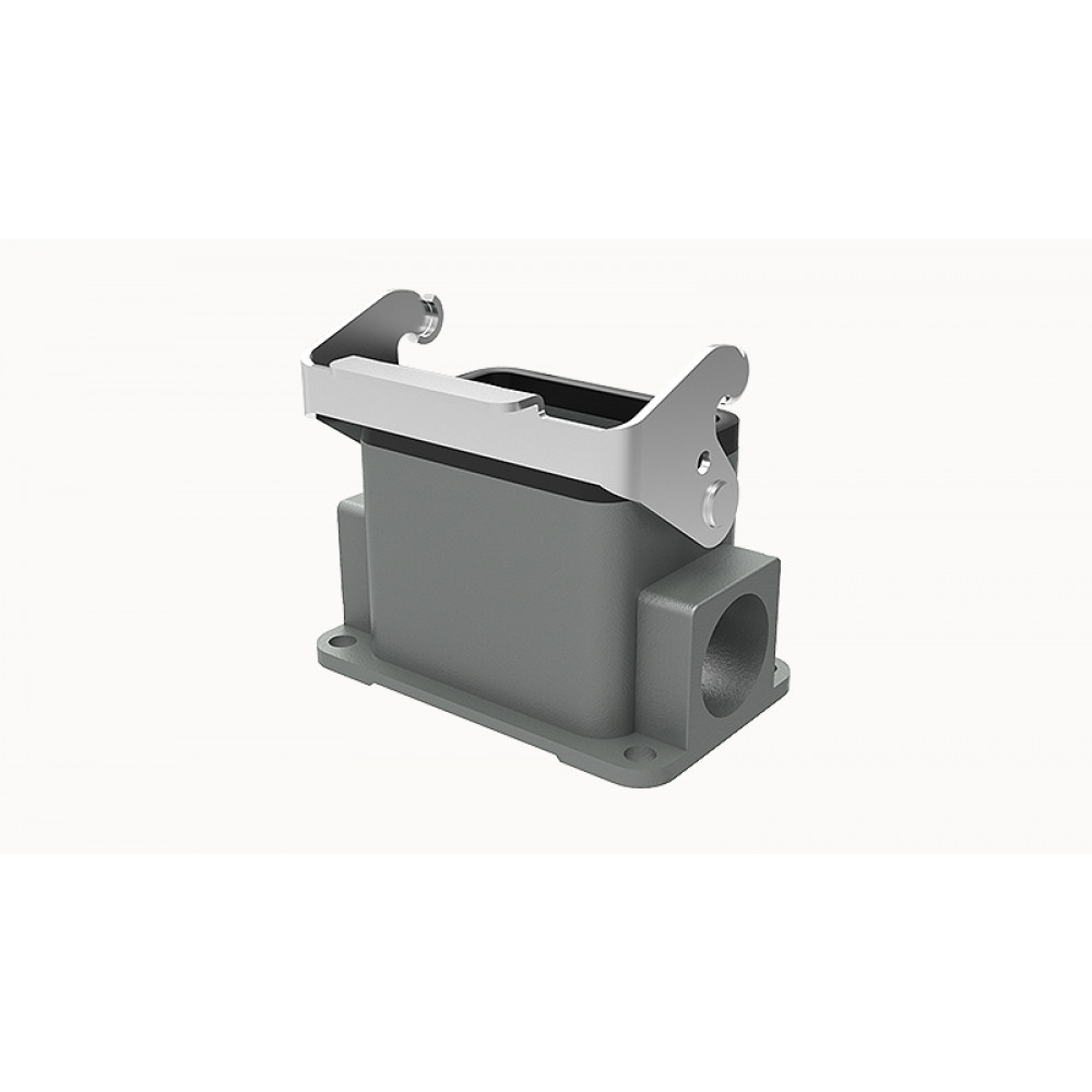 Основание разъема на панель, закрытое, типоразмер 6B, с уплотнителем, 2 отверстия с резьбой для кабельных вводов M20x1,5, с одной защелкой, без защитной крышки, материал корпуса: алюминиевый сплав