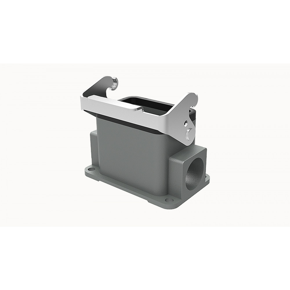 Основание разъема на панель, закрытое, типоразмер 6B, с уплотнителем, 2 отверстия с резьбой для кабельных вводов PG13,5, с одной защелкой, без защитной крышки, материал корпуса: алюминиевый сплав