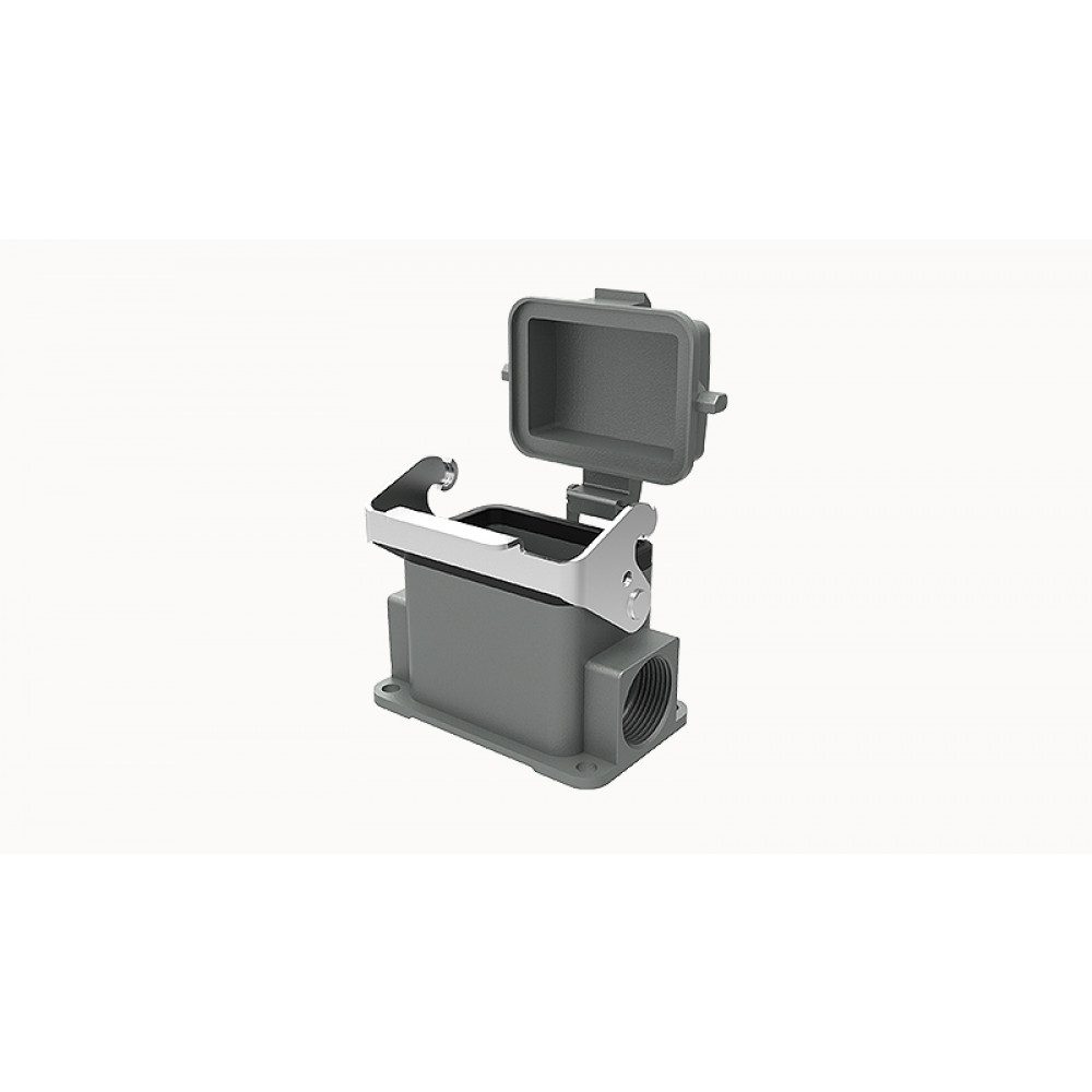 Основание разъема на панель, закрытое, типоразмер 6B, с уплотнителем, 1 отверстие с резьбой для кабельных вводов PG13,5, с одной защелкой, с защитной крышкой, материал корпуса: алюминиевый сплав