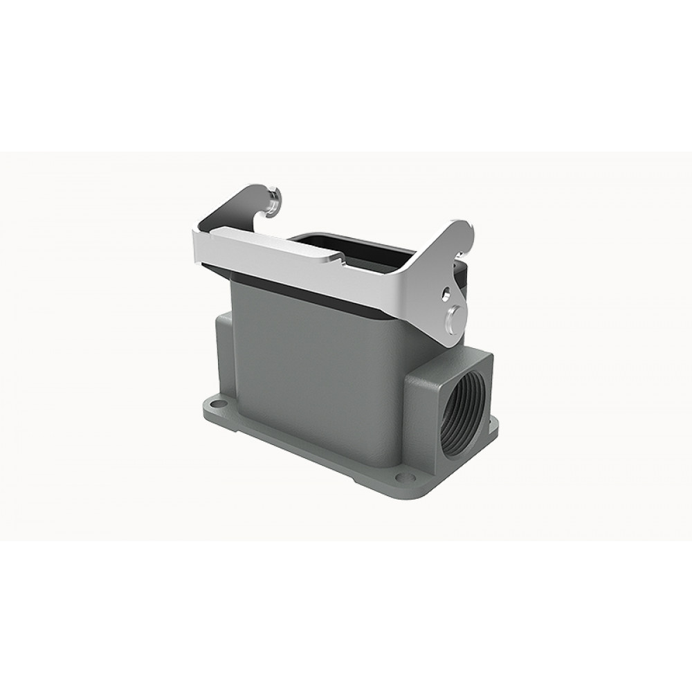 Основание разъема на панель, закрытое, типоразмер 6B, с уплотнителем, 1 отверстие с резьбой для кабельных вводов M25x1,5, с одной металлической защелкой, без защитной крышки, материал корпуса: алюминиевый сплав