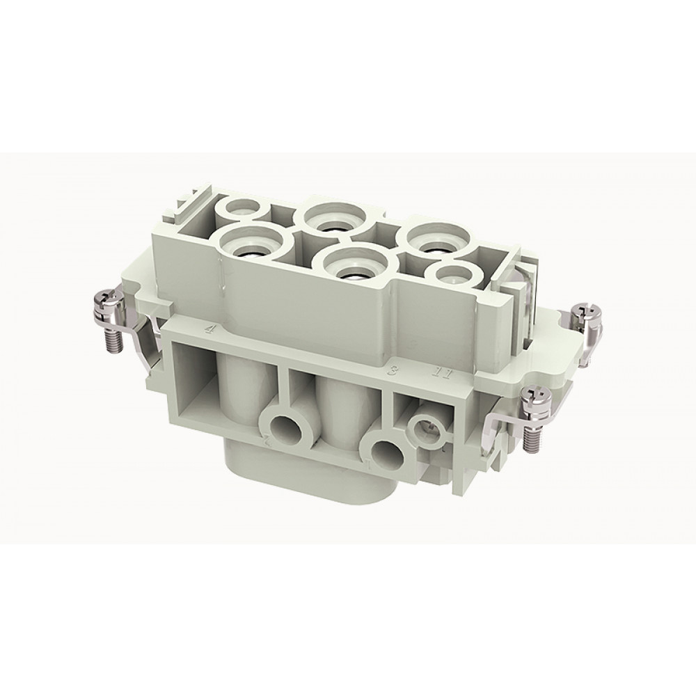 Розеточная контактная вставка, винтовая фиксация, 4/2 полюса + PE, типоразмер 16B, 400/690V, 82/16A, сечение обслуживаемых проводников 2,5-16 мм кв., тип покрытия контактов: серебро