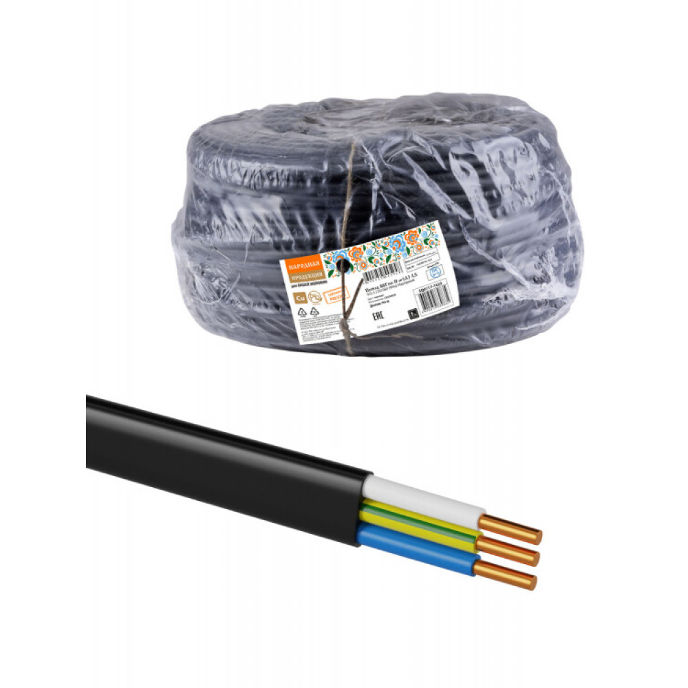 Описание Провод ВВГмб-П нг(А)-LS 3х2,5 220/380 (90м) Народный SQ0117-1620