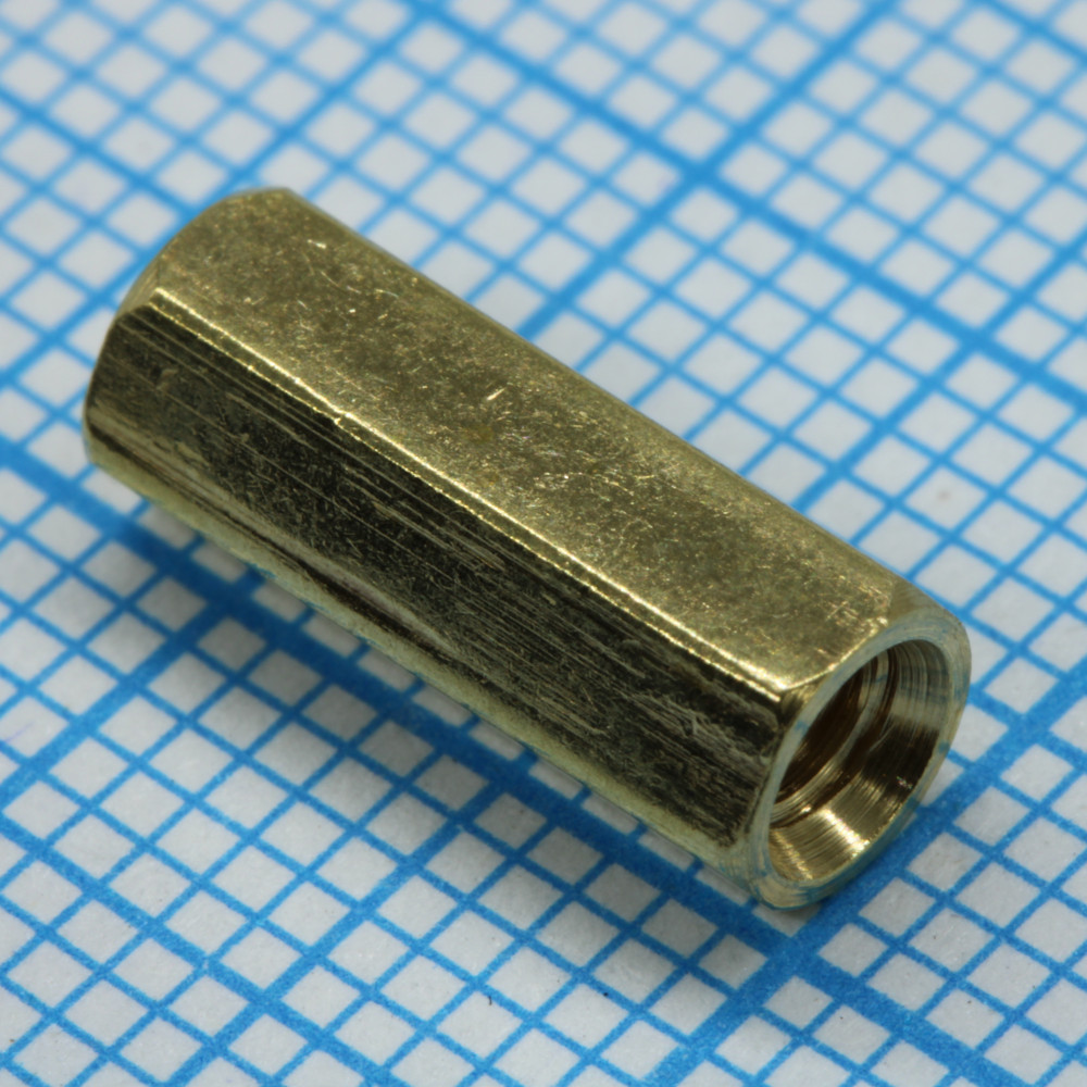 Стойка латунная, без покрытия шестигранная М3 отверстие-отверстие, L=12мм