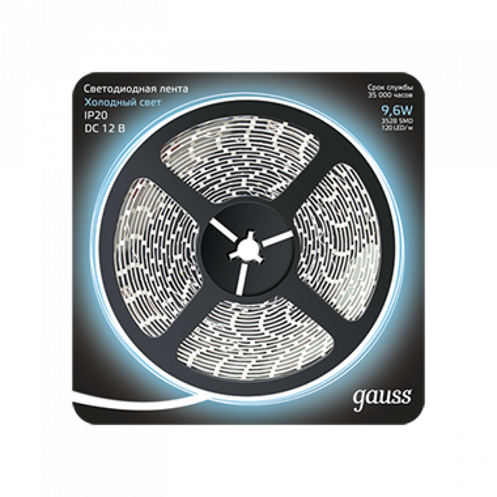 Описание Лента LED 2835/120-SMD 9.6W 12V DC холодный белый (блистер 5м) (кр.1шт)