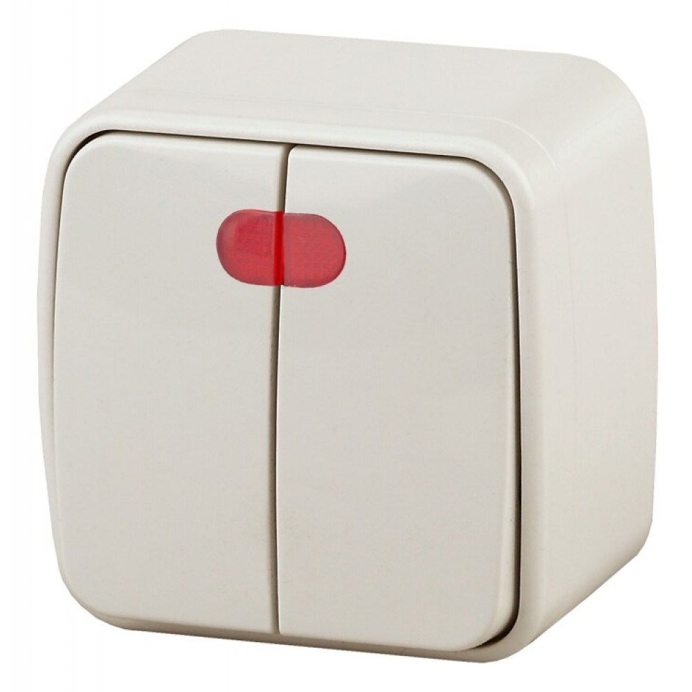 3-105-02 Выключатель двойной с подсветкой, 10А-250В, IP20, ОУ, Polo, сл.кость (18/360/4320) Б0036123, Выключатель и переключатель открытого монтажа