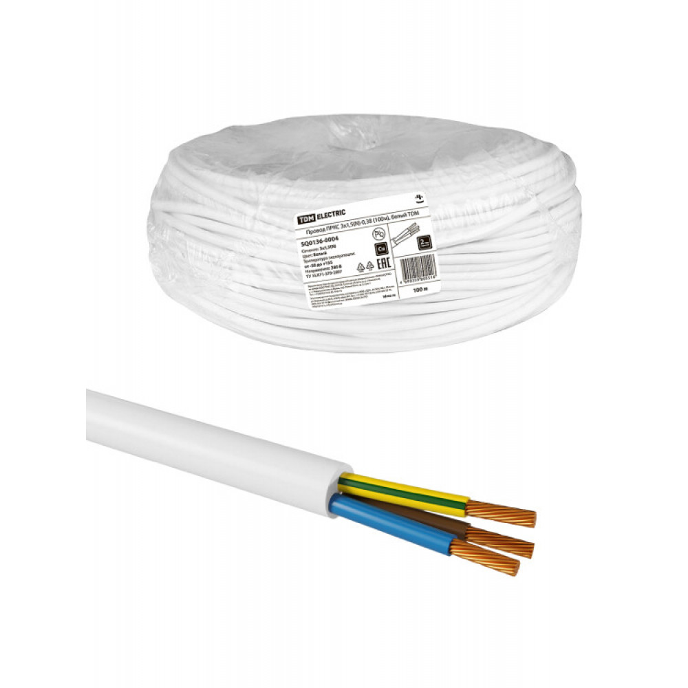 Провод ПРКС 3х1,5(N)-0,38 (100м), белый SQ0136-0004, Кабель и провод силовой для стационарной прокладки