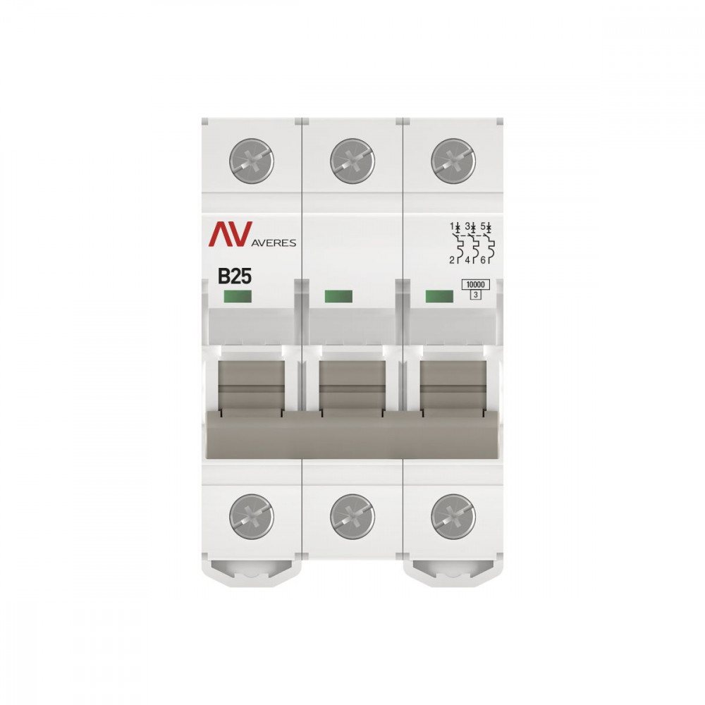 Выключатель автоматический AV-10 3P 25A (B) 10kA EKF AVERES(кр.40шт), Выключатель автоматический модульный