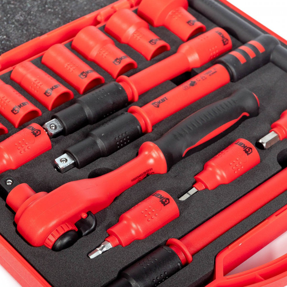Набор диэлектрического инструмента 3/8" торцевые шестигранные головки с трещоткой 3/8" для работ под напряжением до 1000 В, стандарт VDE