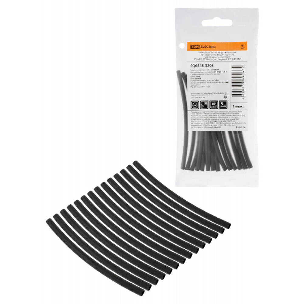 Набор трубок термоусаживаемых, клеевых "Моноцвет, черный 3,2/1,0 TDM" SQ0548-3203, Изделие термоусаживаемое