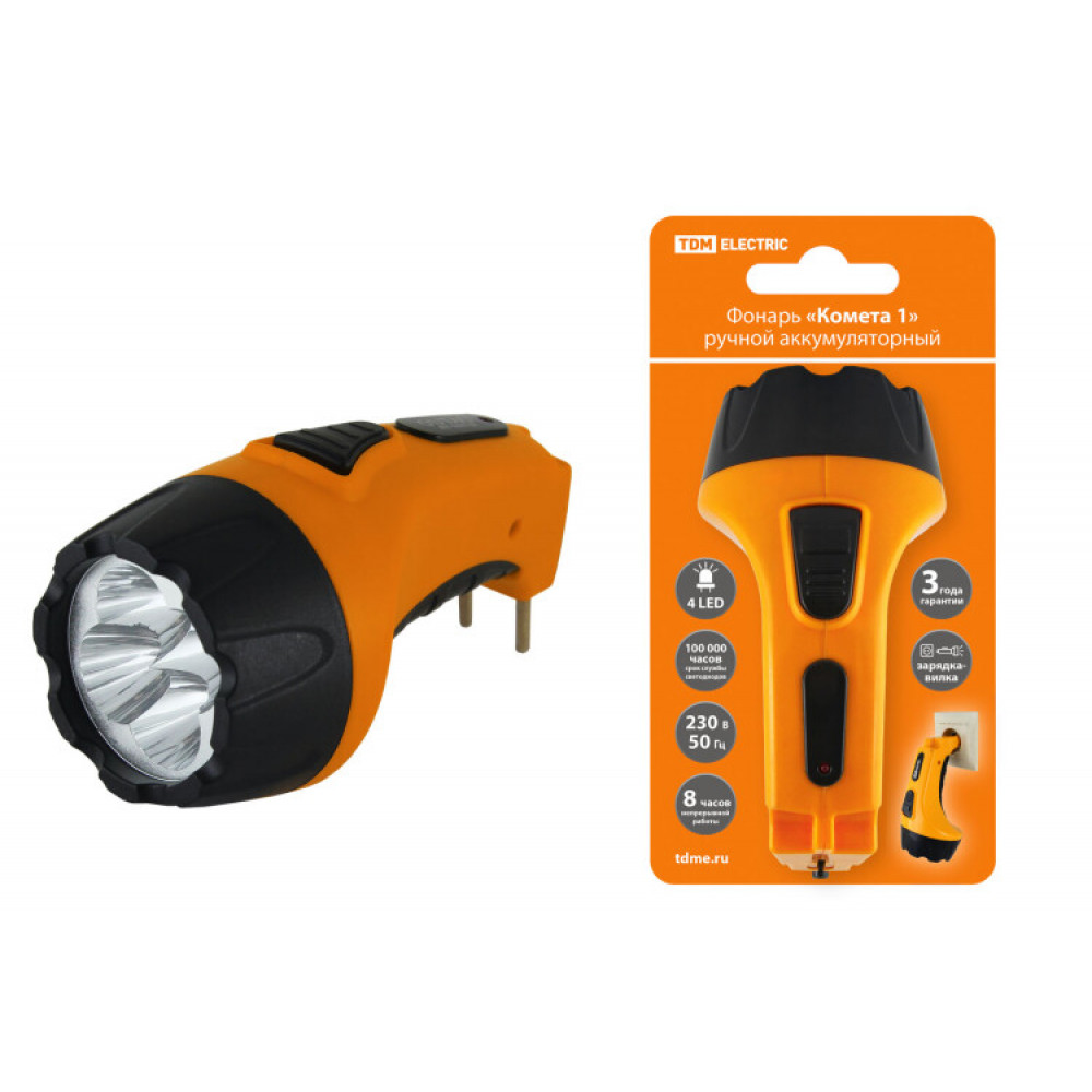 Фонарь «Комета 1» ручной аккумуляторный, 4 светодиода, 0,5Ач 230В вилка, SQ0350-0039