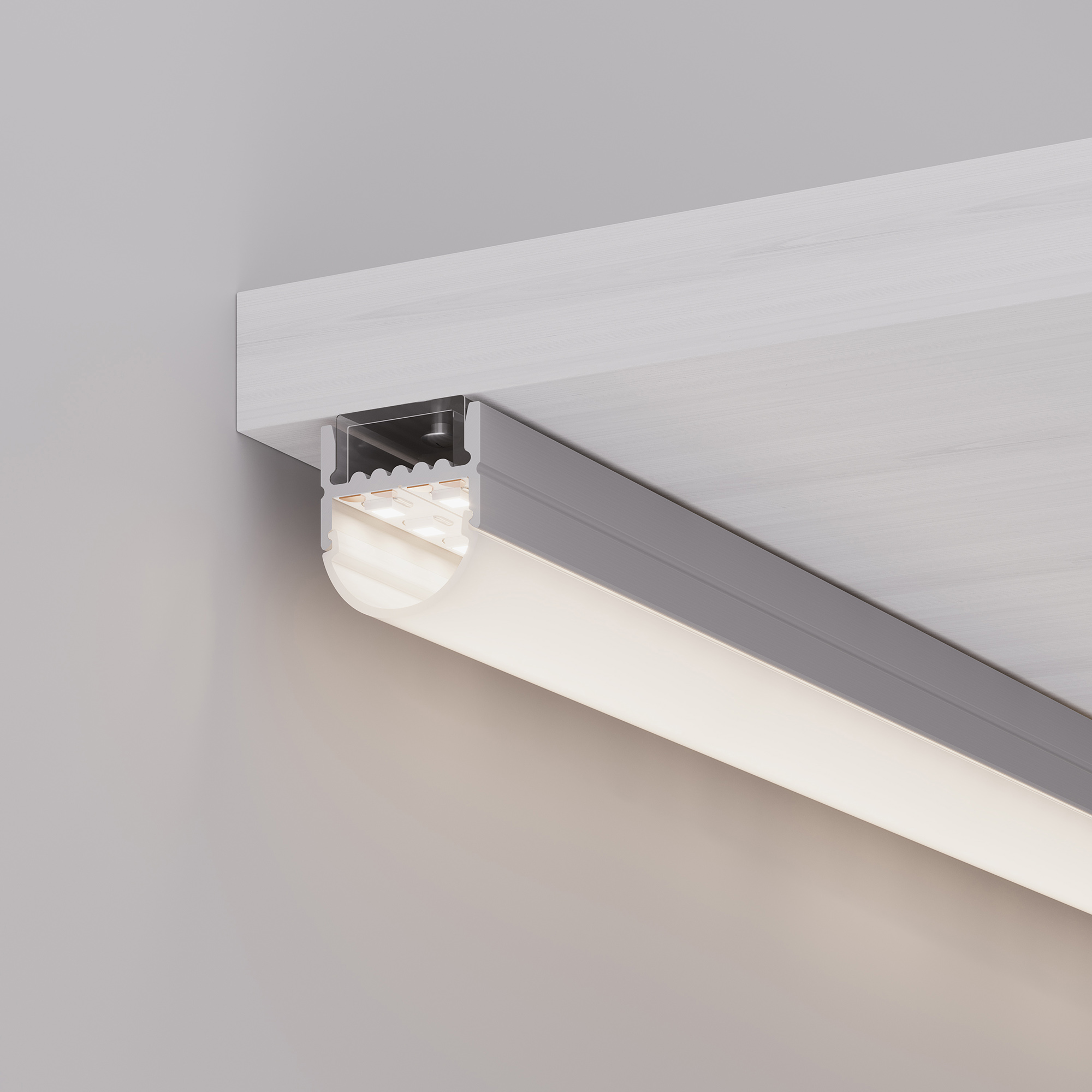 Алюминиевый анодированный накладной профиль для светодиодных лент и линеек. Большой выбор круглых, квадратных, фигурных экранов и заглушек. Габаритные размеры (L?W?H): 2000x19,5x13,2 мм. Ширина площадки для ленты 15 мм. Экраны, заглушки и другие аксессуар