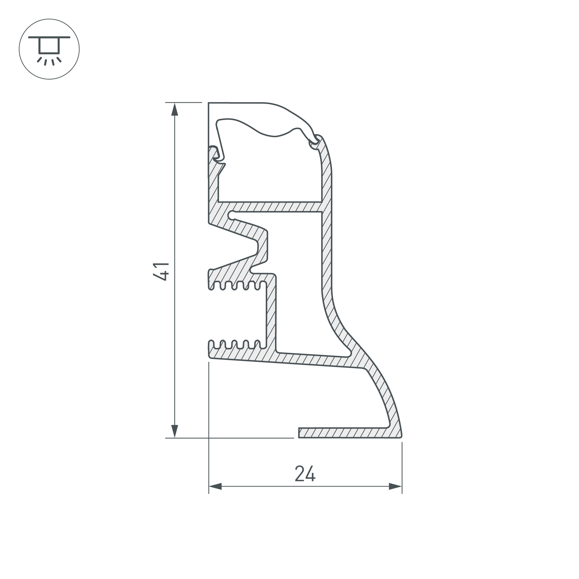 Алюминиевый анодированный накладной профиль-плинтус для светодиодных лент и линеек. Габаритные размеры (L?W?H): 2000x24x41 мм. Ширина площадки для ленты 12 мм. Экраны, заглушки и другие аксессуары приобретаются отдельно. Цена за 1 метр. Винты для установ