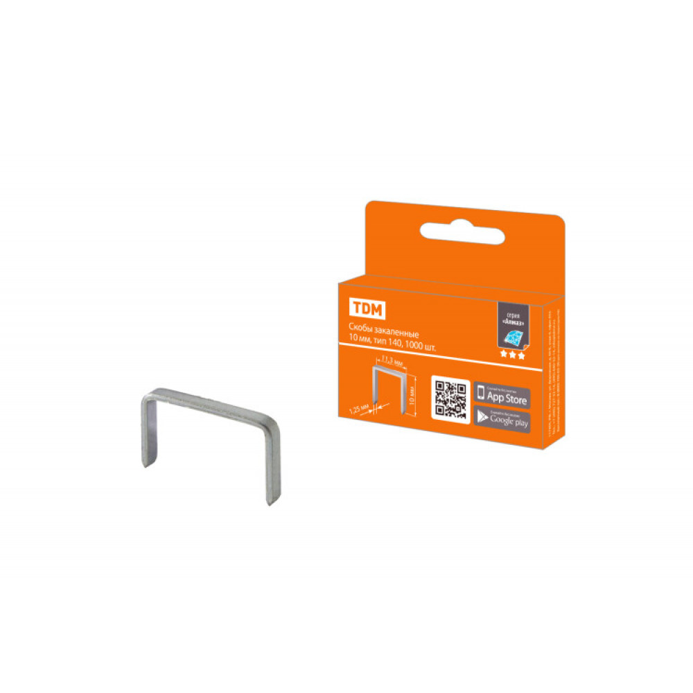 Описание Скобы закаленные 10 мм, тип 140, 1000 шт, "Алмаз" SQ1038-0202