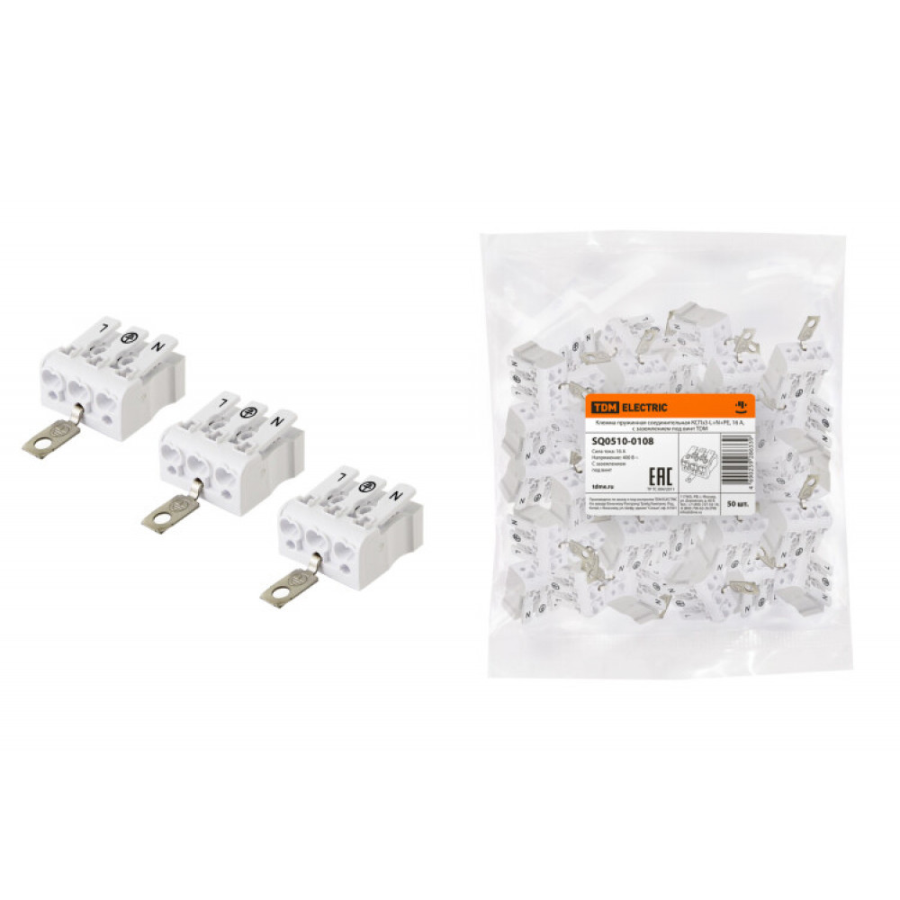 Доставка Клемма пружинная соединительная КСПз3-L+N+PE, 16 A, с заземлением под винт SQ0510-0108