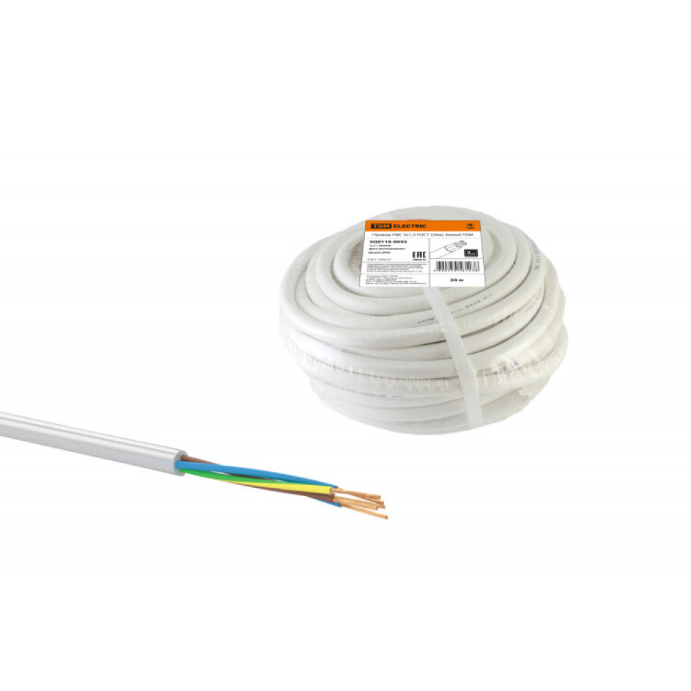 Описание Провод ПВС 5х1,5 ГОСТ (20м), белый SQ0118-0093