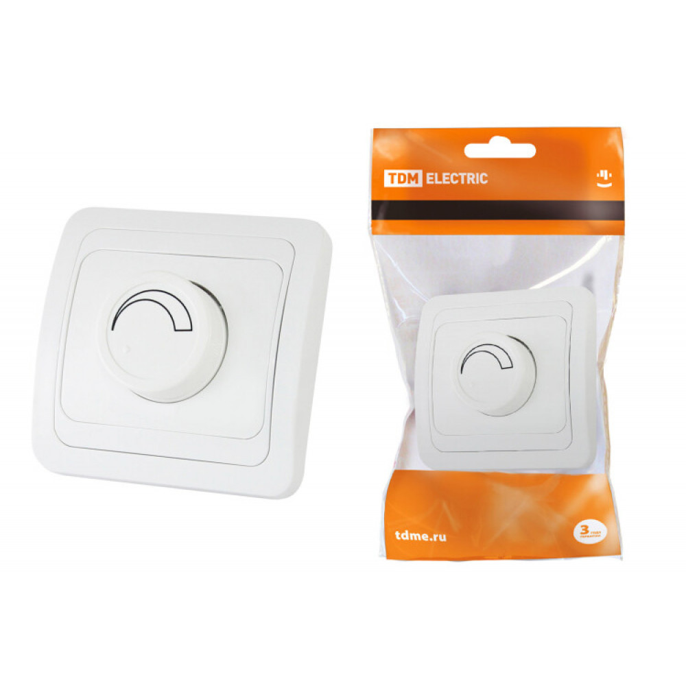 Светорегулятор (RL, 600Вт) поворотный белый "Валдай" SQ1804-0016, Светорегулятор (диммер) скрытого монтажа