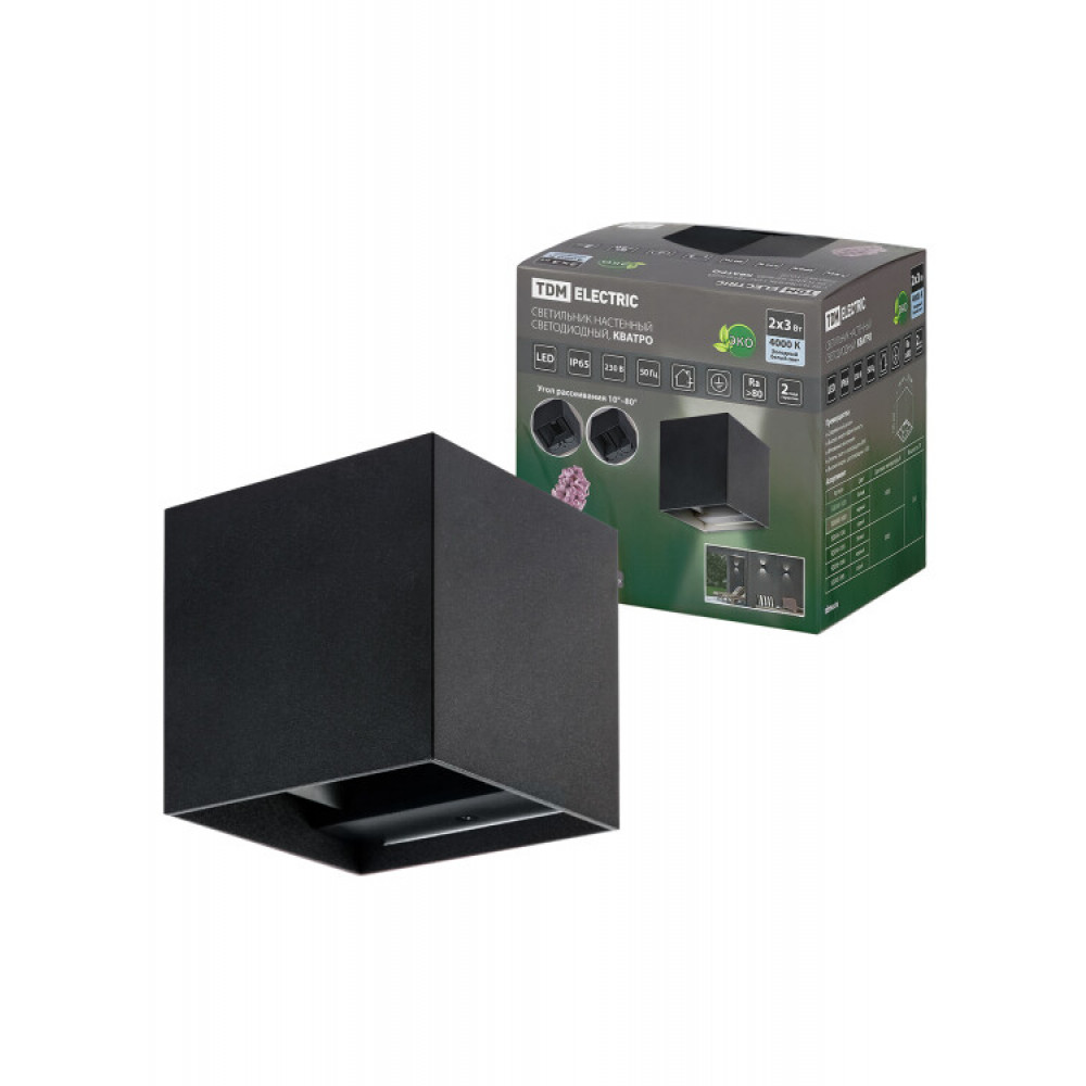 Описание Светильник настенный LED, Кватро, 2х3 Вт, 4000 К, Н100 мм, алюм./черн., вверх/вниз, IP65, SQ0345-1029