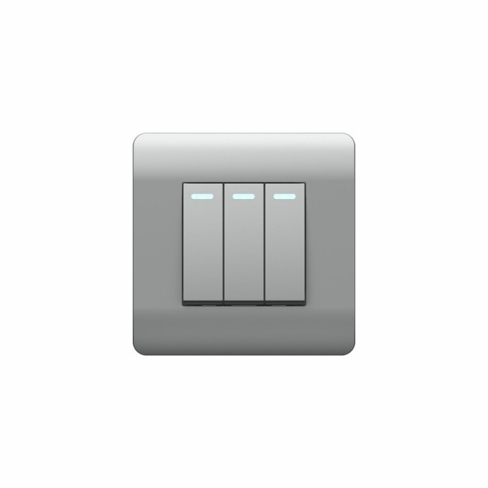 Описание Переключатель 3-кл. NEW3-E 10А с подсветкой серебр. 431513