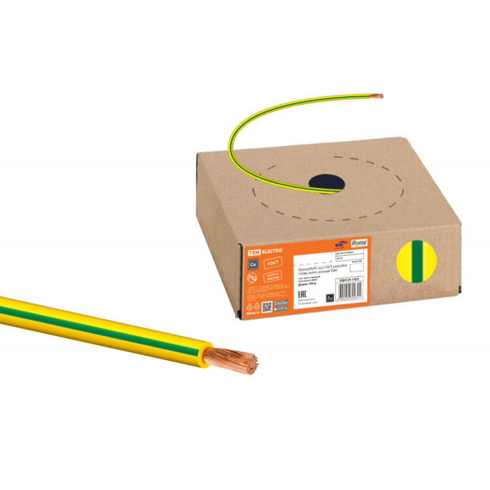 Описание Провод ПуГВ 1х2,5 ГОСТ в коробке (100м), желто-зеленый SQ0124-1425
