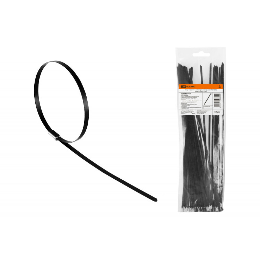 Описание Хомут стальной с полимерным покрытием ХСП (304) 4,6х600 (50шт) SQ0582-0111