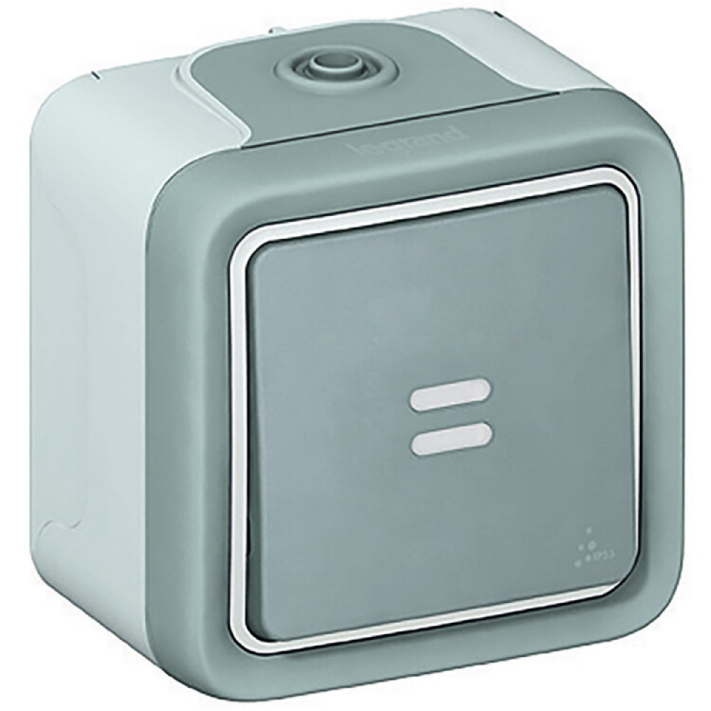 Plexo Кноп.10A НО с подсв+заж 069722, Изделие электроустановочное