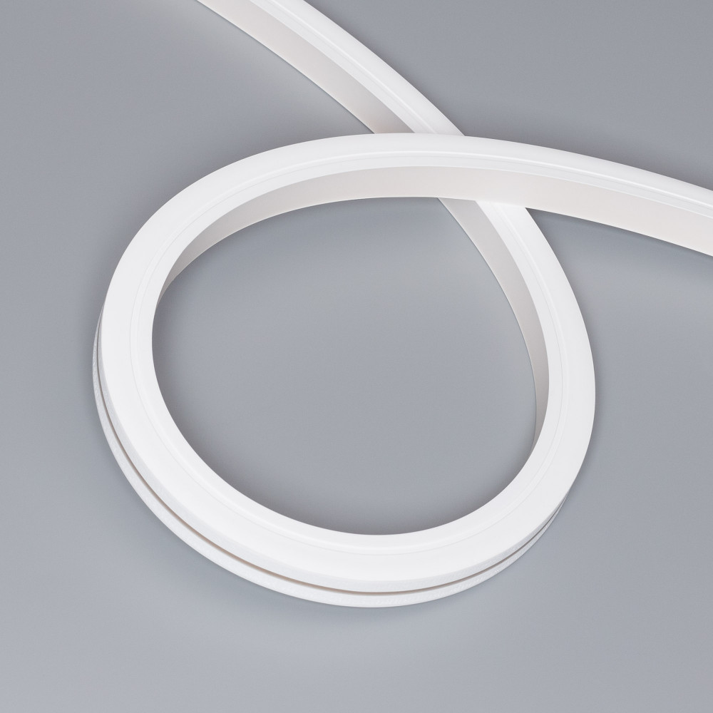 Гибкая герметичная лента (неон серии MOONLIGHT), сечение 16х16 мм. Светодиоды CSP 280 шт/м. Цвет свечения ТЁПЛЫЙ (2300К), индекс цветопередачи CRI>90, световой поток 380 лм/м, угол излучения 114°. Мощность 10 Вт/м, питание 24 В. Класс пылевлагозащиты IP67