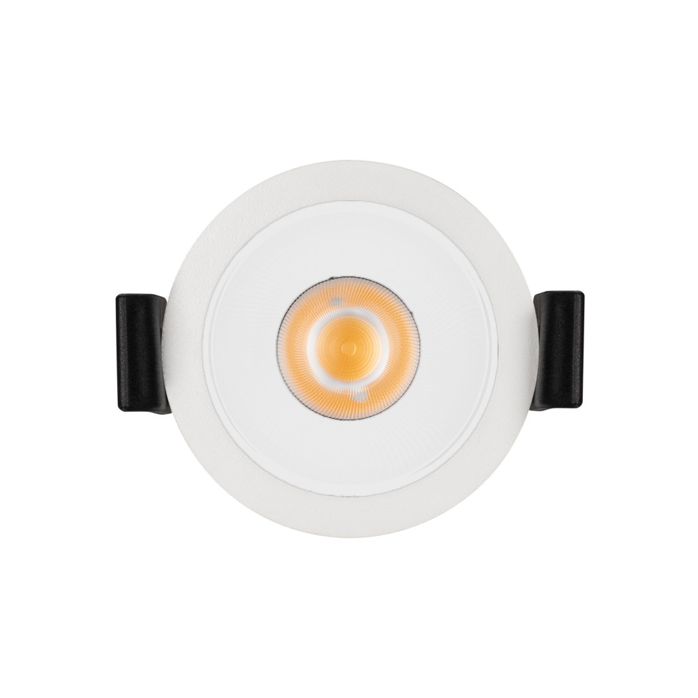 Встраиваемый светильник даунлайт. Мощность 10 Вт, св. поток 865 лм, 87 лм/Вт, теплый 3000 K, CRI>90, UGR<16, угол 35°, напряжение питания 230 В. Черный круглый корпус из алюминия, степень защиты IP20. Размер: диаметр 58 мм, высота 68 мм. Монтаж встраиваем