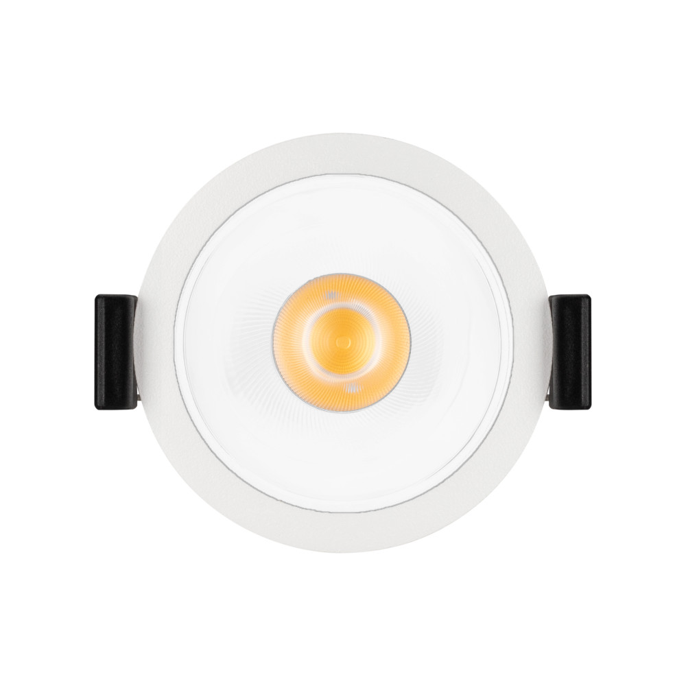 Встраиваемый светильник даунлайт. Мощность 15 Вт, св. поток 1210 лм, 81 лм/Вт, теплый 3000 K, CRI>90, UGR<16, угол 35°, напряжение питания 230 В. Белый круглый корпус из алюминия, степень защиты IP20. Размер: диаметр 66 мм, высота 68 мм. Монтаж встраиваем